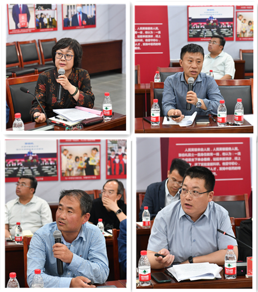 “全国高校黄大年式教师团队”单位、中医药研究院院长张俊华,管理学院院长何强,护理学院院长庞晓丽从学院教师人才队伍整体情况、存在问题和发展举措等方面提出研究分析思路。