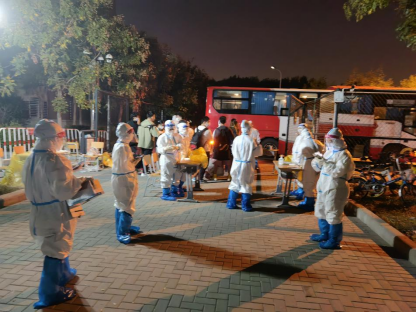 中医药研究院党委接到学校紧急通知后,迅速安排4名职工,参加校内相关人员的信息采集任务。疫情即命令,防控即责任。院党委组织员候登登老师第一时间站出来,主动报名,5分钟内完成了贺爽、金鑫瑶、冷玲3位老师的报名集合工作。通过与校医室老师和属地医务人员的密切配合,组织学生有序进行核酸检测。