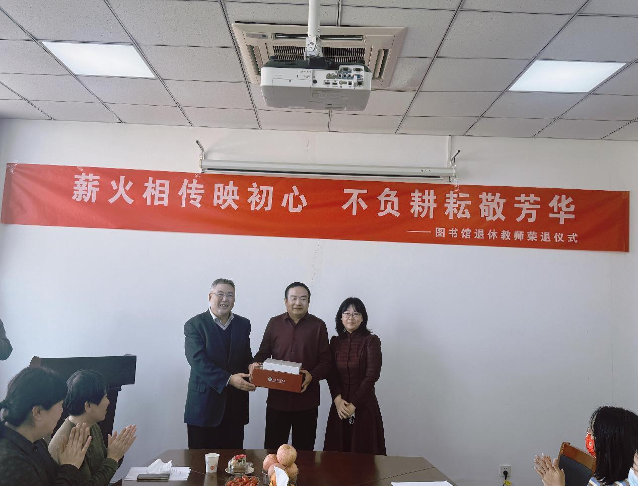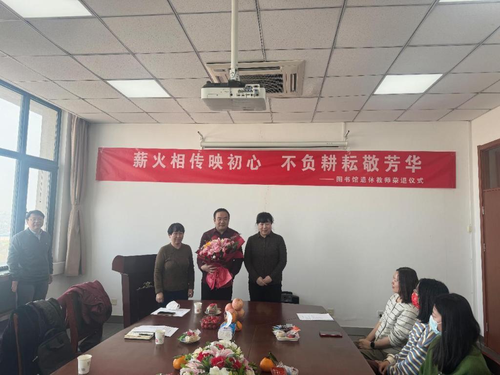 3月7日上午,“薪火相传映初心 不负耕耘敬芳华”史宝友教师荣休仪式在图书馆五楼会议室举行。学校工会常务副主席孟向文、工会副主席傅军、图书馆党政领导班子、全体教职工共同见证退休教师史宝友的荣休仪式。